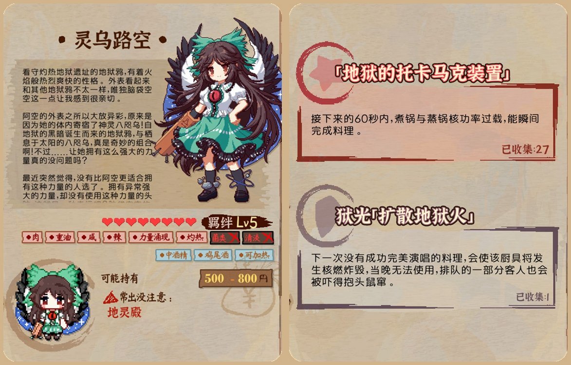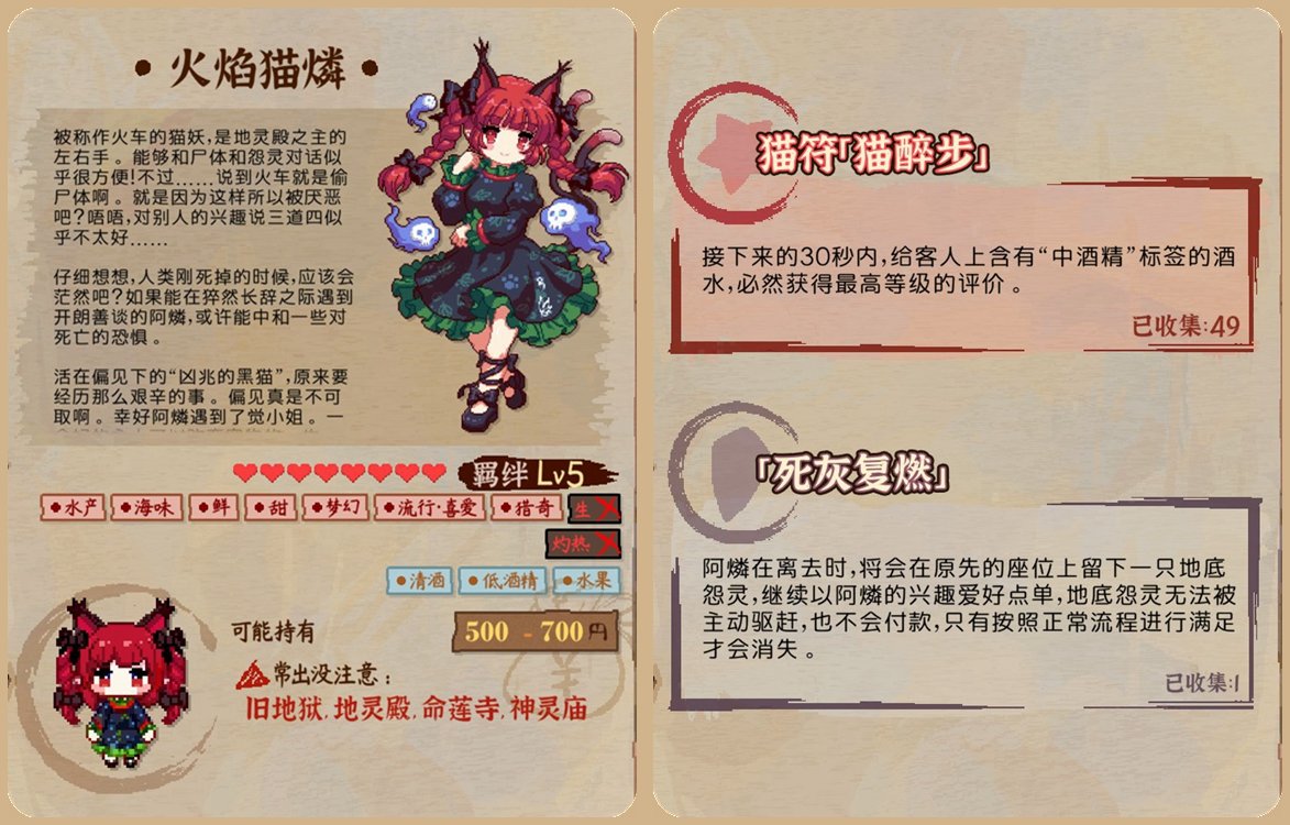 ▍怪诞料理比赛,将旧地狱和地灵殿的所有6位羁绊伙伴升到满级,获得挑战资格。之后在地灵殿找火焰猫燐开启比赛。