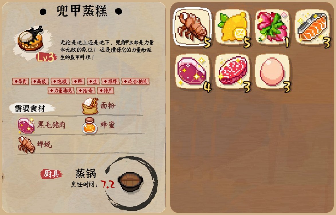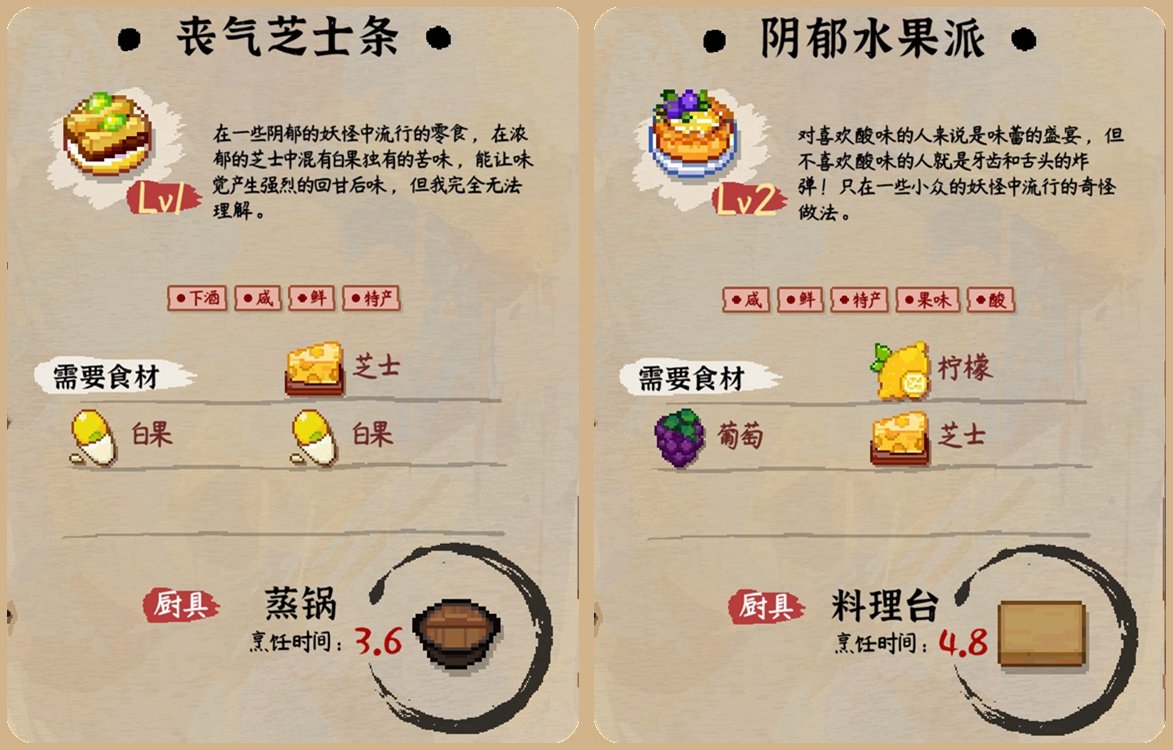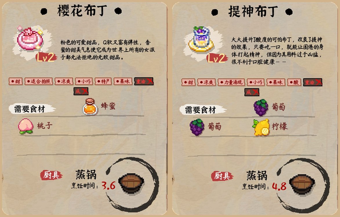 新增食材:黄油、芝士、柠檬、并蒂莲。