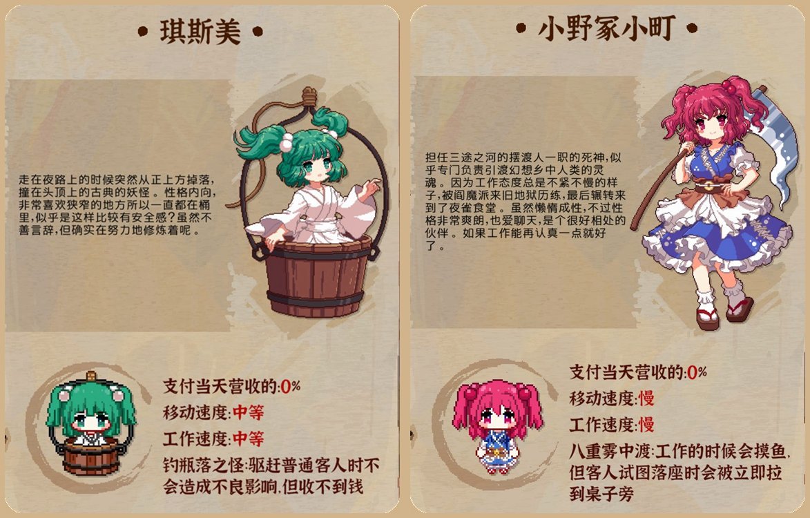 琪斯美&小野冢小町(购买铃仙后就不需要付工资了)