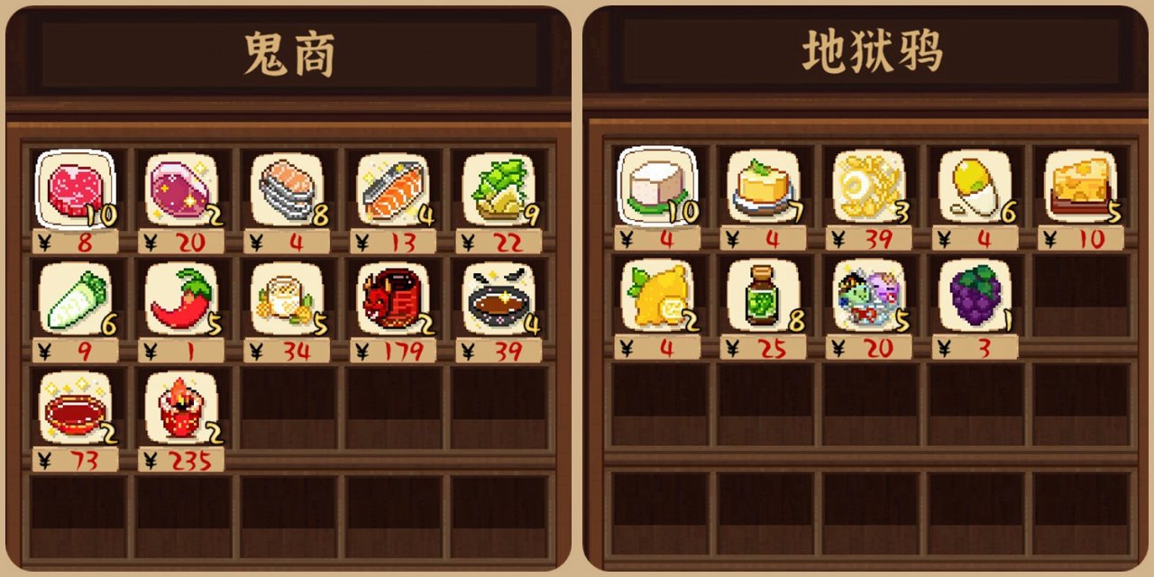 ▍DLC2在旧地狱街道与地灵殿各增加一位地图商人,新增的食材和酒水可以在商店里购买,也可以通过地图采集获得。