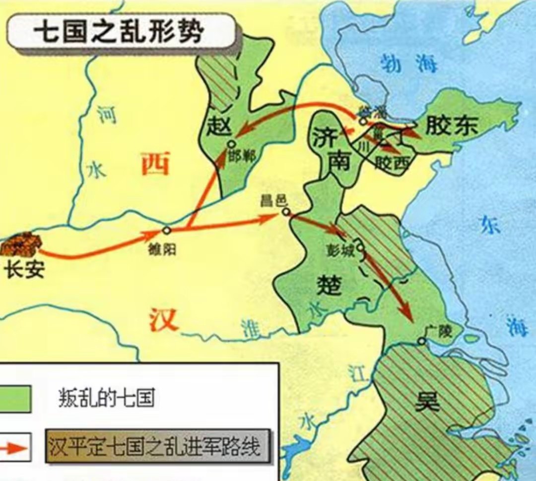 就在公元前180年,呂后去世不久,齊地的諸侯就跳出來要“誅殺呂氏”了,部隊差點就打進長安。要不是軍功集團先一步剷除了呂氏一黨,並把代國的劉恆招到長安做皇帝。諸侯起兵最後稱帝的劇本可能都走通了。