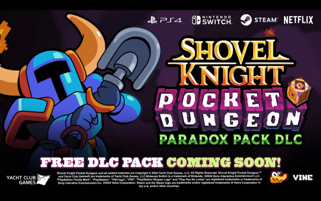 《鏟子騎士 口袋地牢》早前宣佈,將於夏季推出免費DLC“悖論包/Paradox Pack”,內容包含新角色、新關卡、新挑戰、新物品等內容。