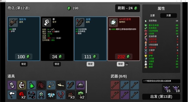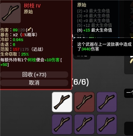 主武器:樹枝,還是因爲樹枝的面板高,並且伴隨原始屬性的生命加成。
