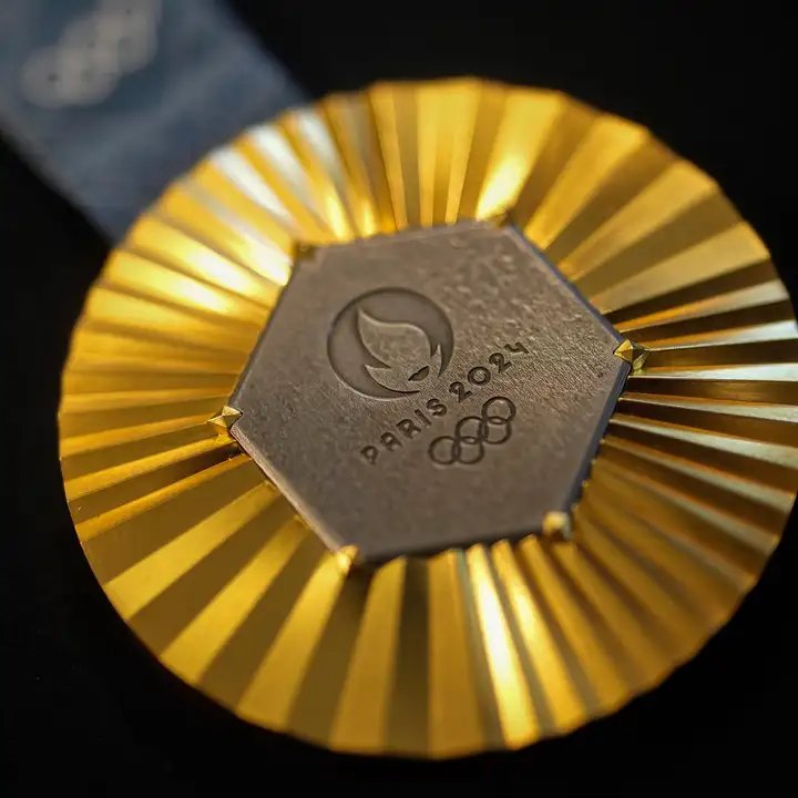 2024巴黎奥运会的金牌今年巴黎奥运会的金牌重量为 529 g,其中含有 505 g 银(95.4%)和 6 g 金,除此之外,每块奖牌还镶嵌了来自埃菲尔铁塔的18g铁块。设计师将铁塔历次维修替换下来的部分重新切割打磨,作为巴黎的象征添加到了奖牌上。