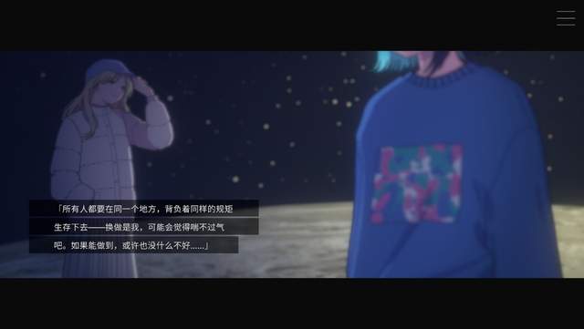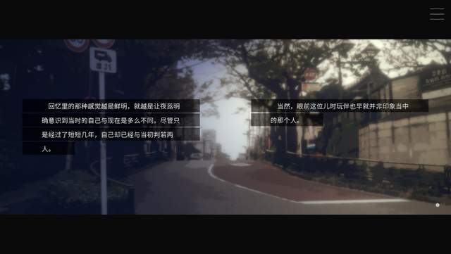 不過需要強調的是,本作獨特性決定了其受衆範圍並不是那麼寬廣——遊戲整體篇幅相對偏短,基本上2-3個小時之內就能推完全結局了,即便是像我這樣很喜歡本作的人士,也會覺得意猶未盡啊。而帶有些夢核元素、實質上偏現實的題材,也不是所有同學都會偏好,畢竟全程沒有什麼波瀾壯闊,有的只是對於情緒的細膩闡釋罷了。