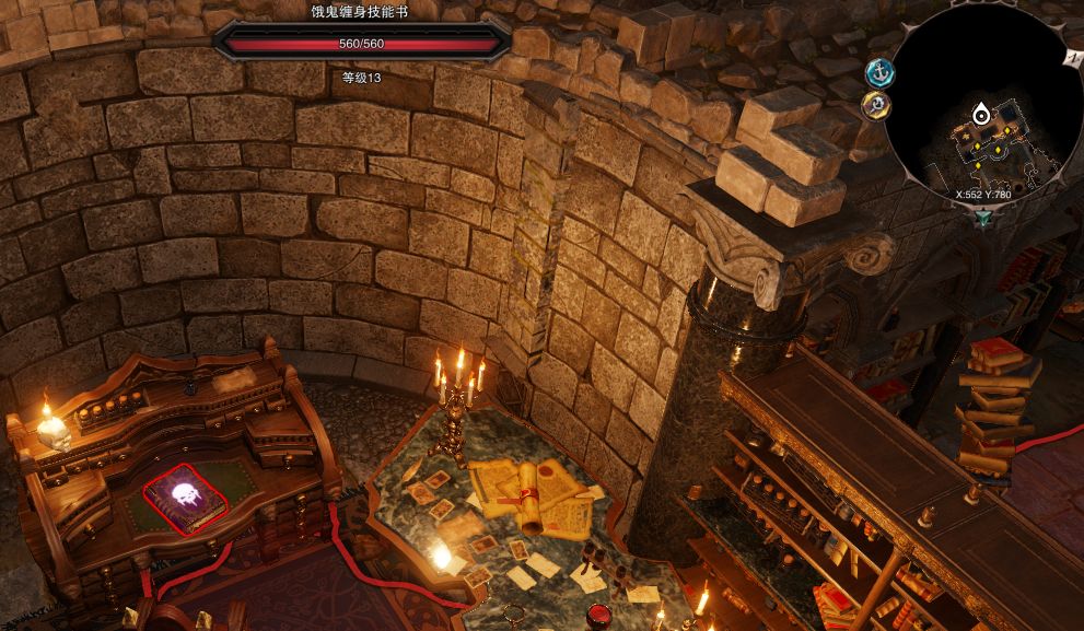 和他對話完,使用石園的傳送點再走回來,萊克爾會去地下室。別理他,先偷本技能書再說。