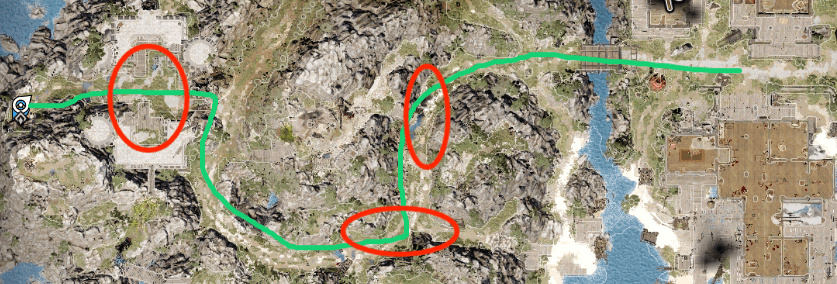 常規方法是按綠色路徑找到【肇事者洞穴】(紅圈標註點有埋伏的敵人),然後從正面抓莫德斯。