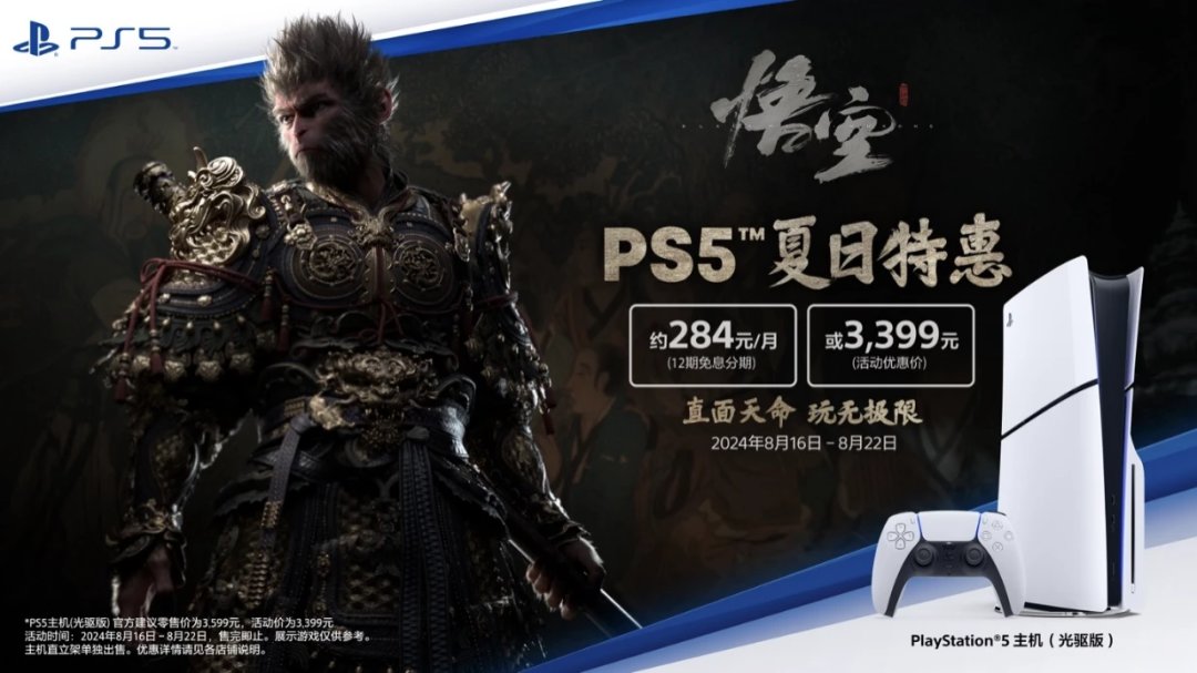 最后,我也给近期为了《黑神话 悟空》而准备购买PS5的朋友提个醒。京东、天猫、抖音官方旗舰店近期将开启PS5的优惠活动。活动时间为8月16日0点至8月22日23点59分59秒。PS5(轻薄版)光驱标准版售价3399元,支持12期免息分期,每月低至约284元;PS5(轻薄版)数字版售价2799元,支持12期免息分期,每月低至约234元;虚拟现实设备PS VR2直降1200元,优惠价3299元。