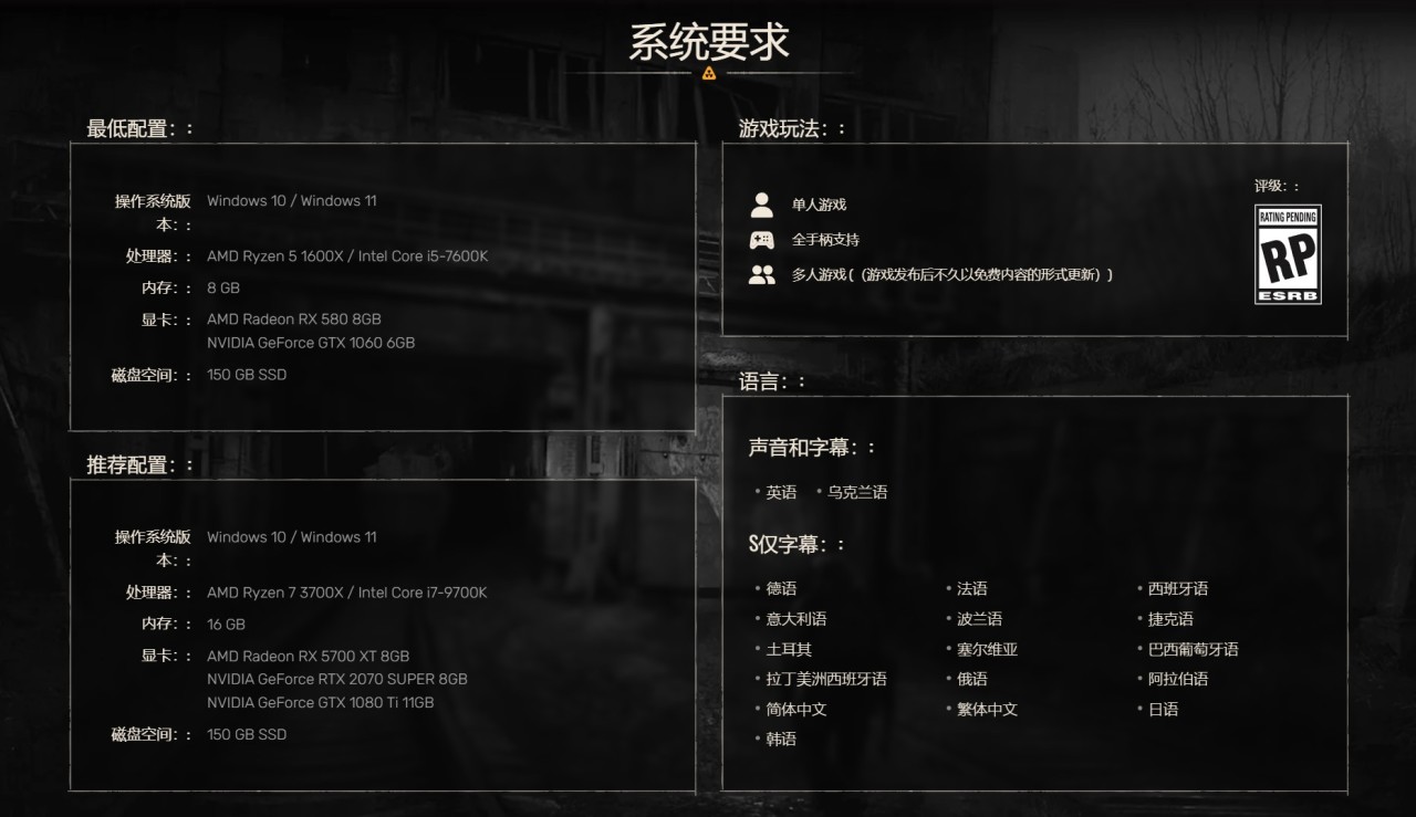 附上游戲配置推薦圖及語言支持