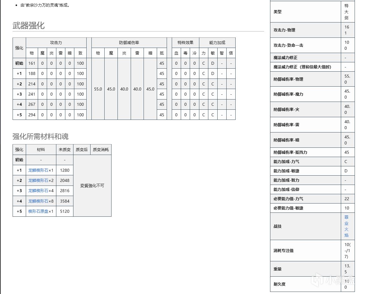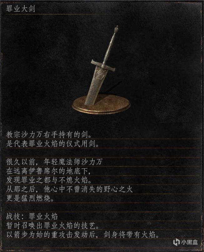 可以一用的特大劍,但也僅僅能用,自身沒有火傷,戰技後的火附魔80點,火傷才勉強夠看,動作模組是標準的橫掃特大劍,物理面板很高是個優點,長得比較帥也是,沒啥大優點也沒缺點,中規中矩,前中期可以一用,但同時期有更好的選擇,後期被洛裏安大劍全面替代。