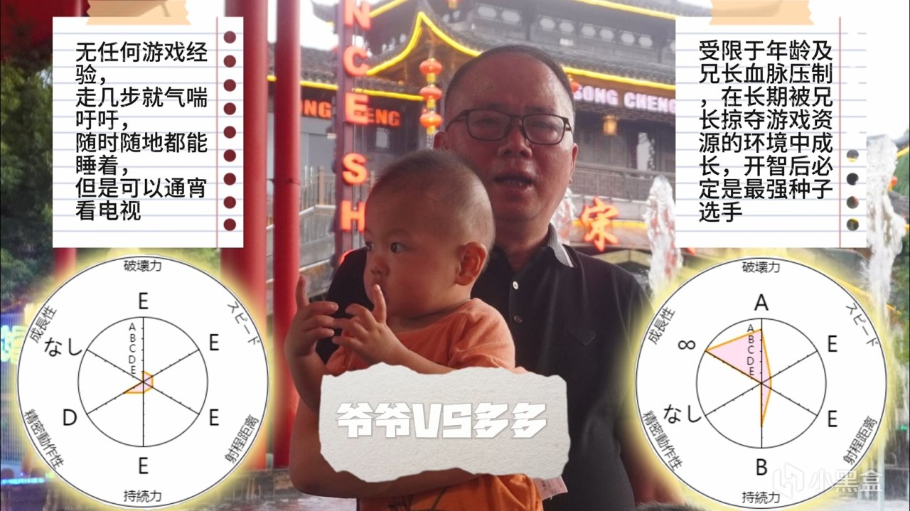 第一組對戰的選手是爺爺vs多多,這是參賽選手的簡介和能力面板。