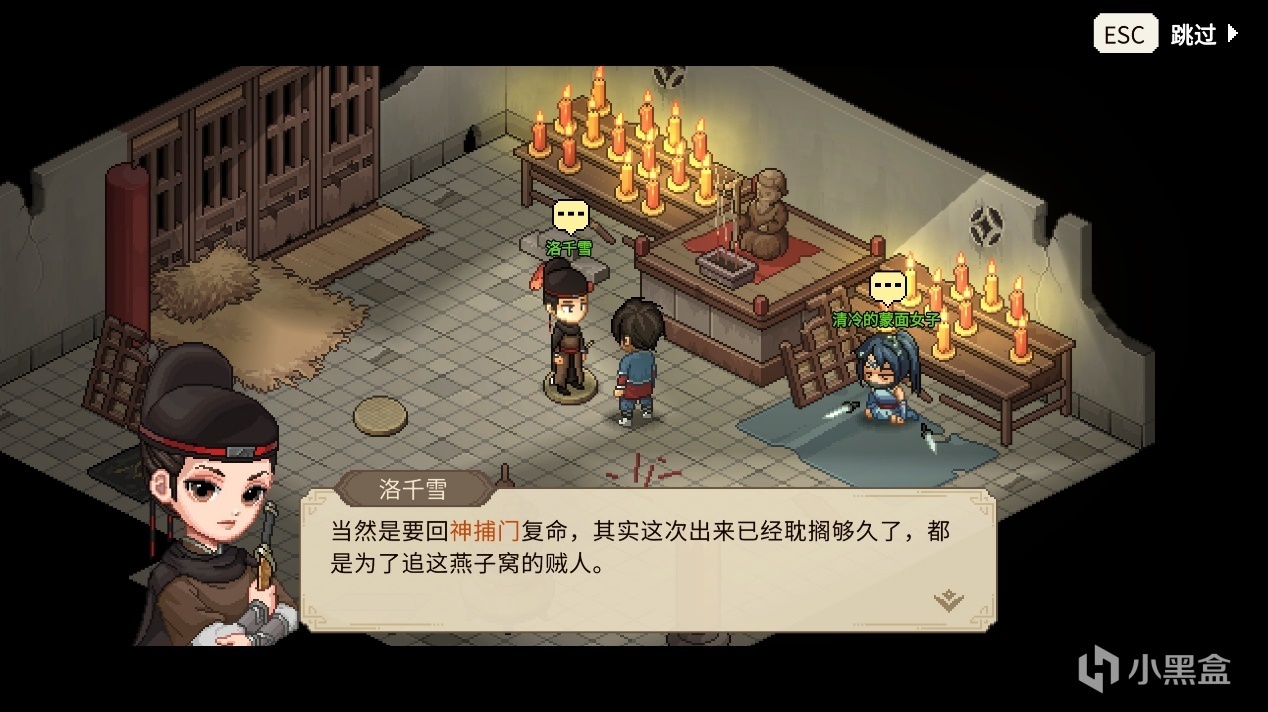最終將人綁好帶入破廟,至此便開始踏上我的江湖之路。洛捕快與我有着三天之約,在這三天結束後,返回破廟,在這期間還給予你選擇,是否釋放女盜賊。給予玩家更多選擇,不過我還是從一而終,依舊幫助洛千雪。