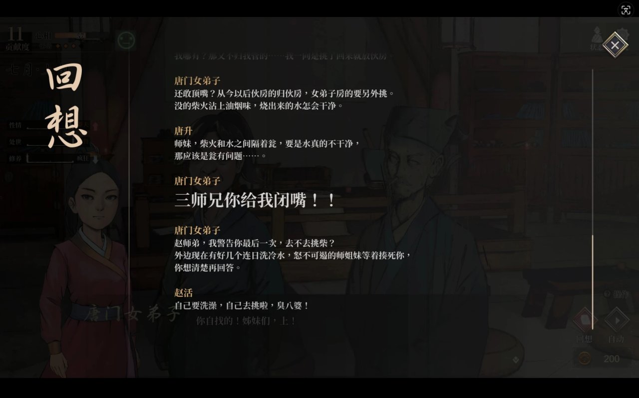 赵活不同,在玩家接手前,赵活有自己的记忆与故事。童年时唐老魔的话,激励着赵活,师兄弟们也与赵活有着极其深厚的感情。