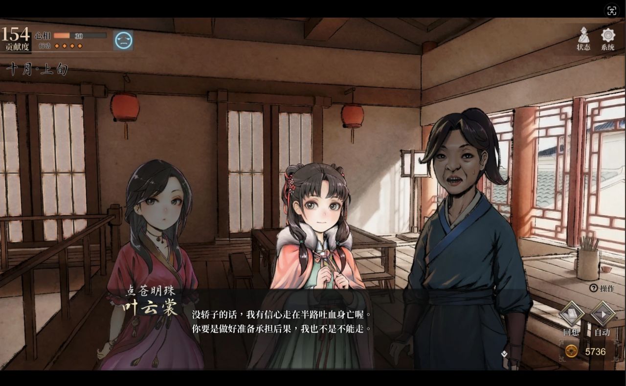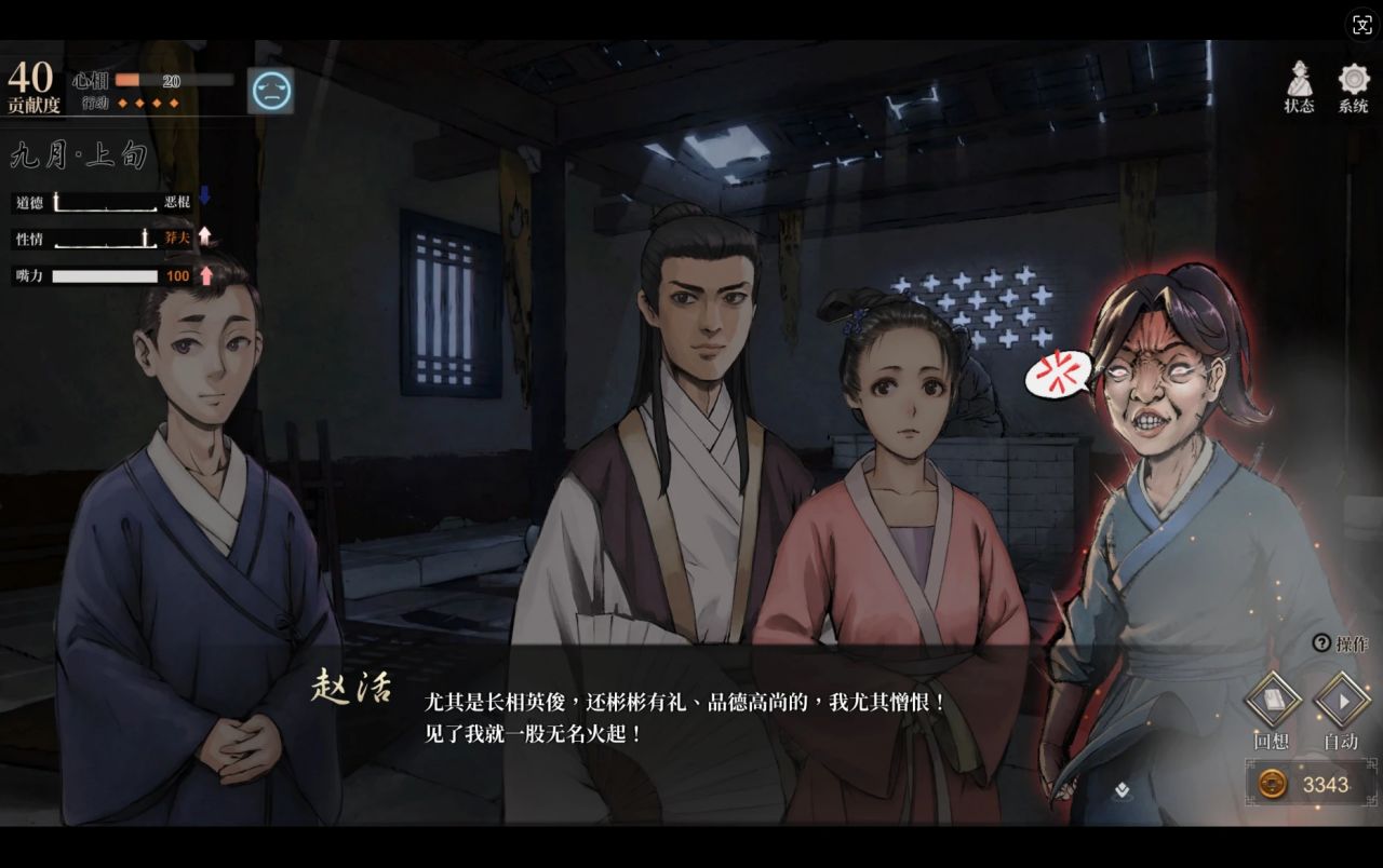 前言:作为一款细节十分丰富的游戏,《活侠传》中有着包含着学问,嘴力,性情,处世,修养,道德等数值,而这些数值的高低变化,将影响主角赵活在故事中的台词与选项。比如高学问下,赵活讲台词时就更喜欢引经据典。
