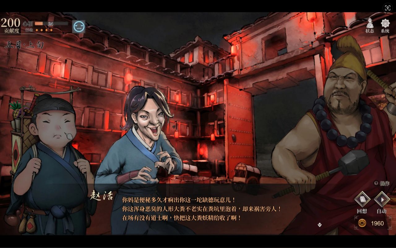 于是,我想如果赵活的属性,是处于疯狂+莽夫+恶棍+粗鲁,且嘴力极高的极端属性条件下,在正常的游戏流程中,又会有什么样的表现呢?心血来潮之下,向朋友借了个200天命点的《活侠传》存档。