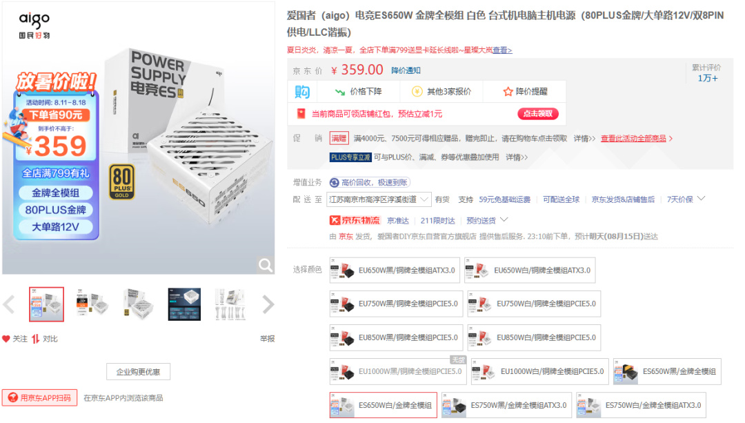 650W金牌 359元:
