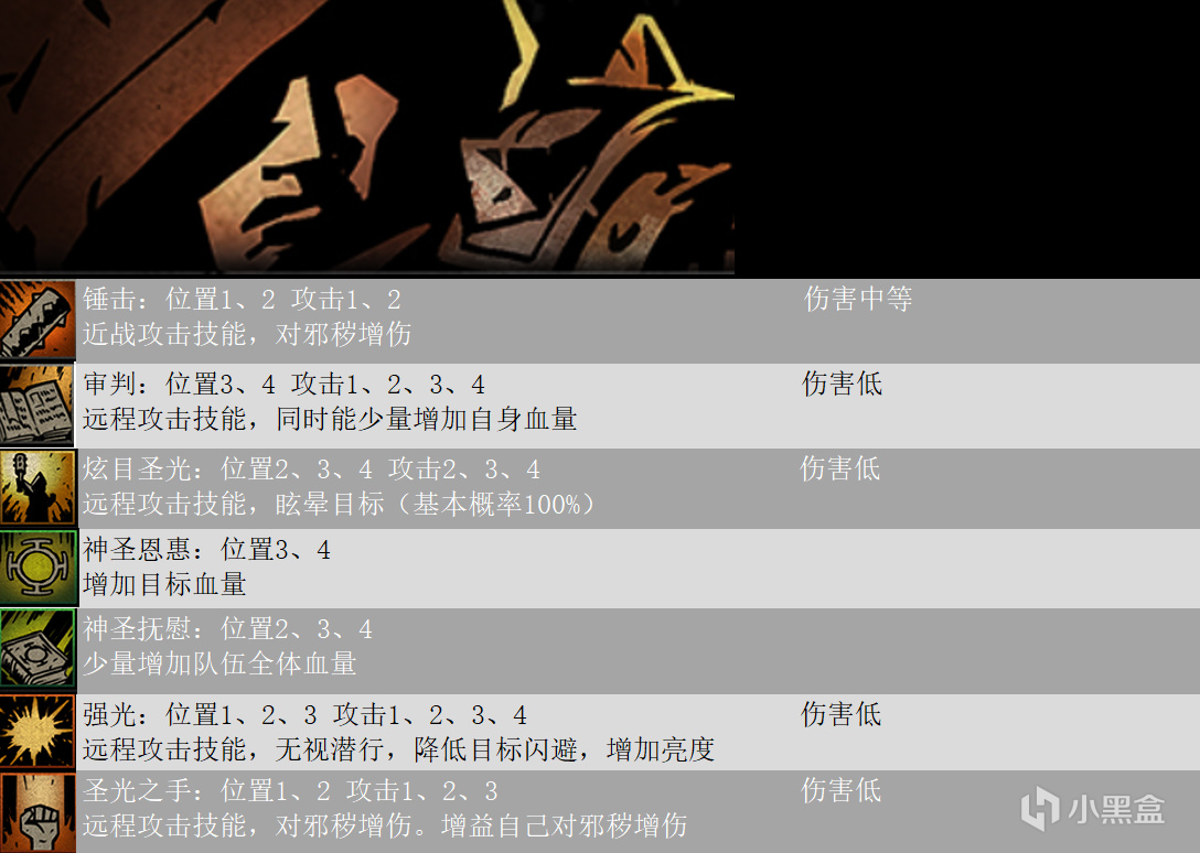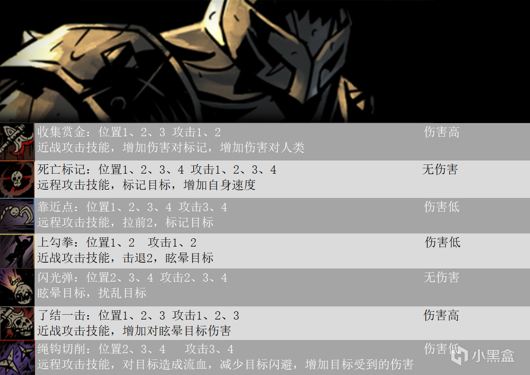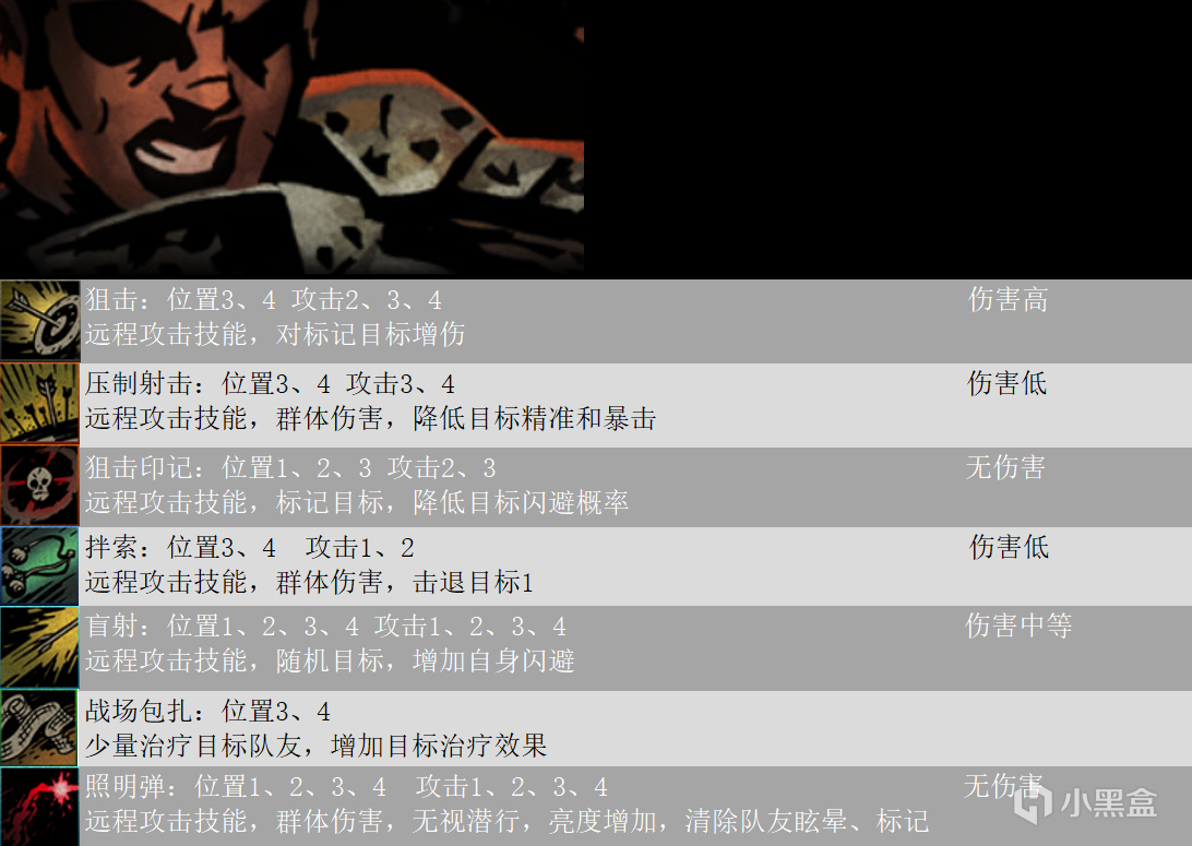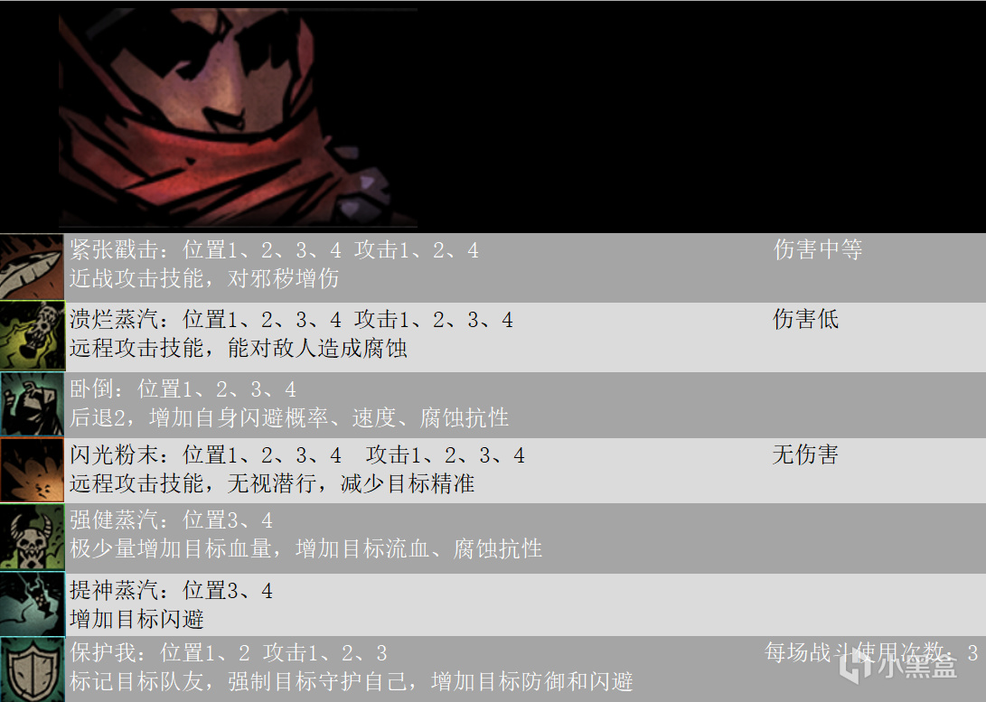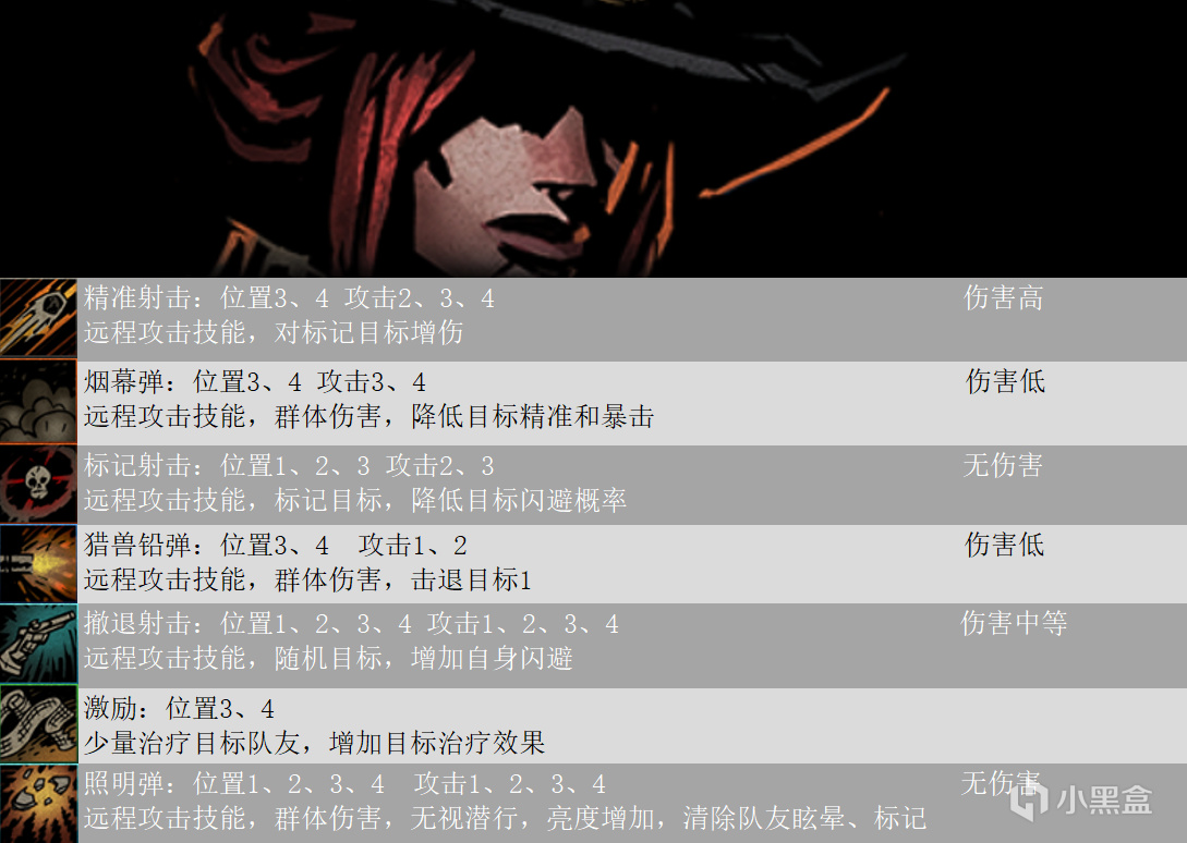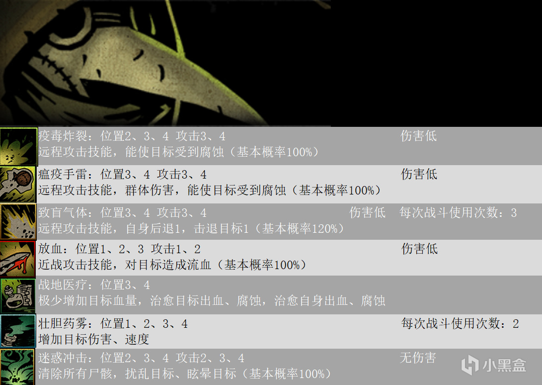 本文包含十字軍、強盜、瘟疫醫生、修女、弩手、火槍手、盜墓賊、古董商人、賞金獵人,技能傷害計算詳情如下圖,因技能傷害和麪板屬性和技能等級都有關,所以技能圖鑑不能給出具體數值