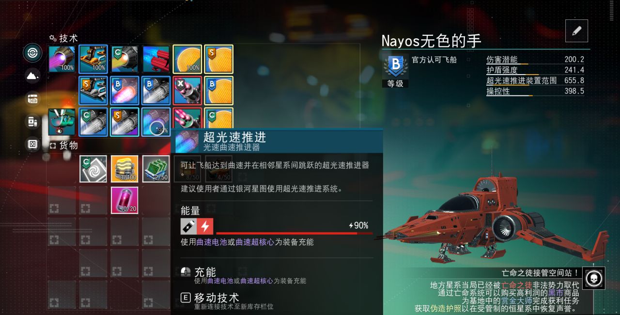 甚至新買了有增壓欄位的B級飛船,超光速模塊放增壓欄位