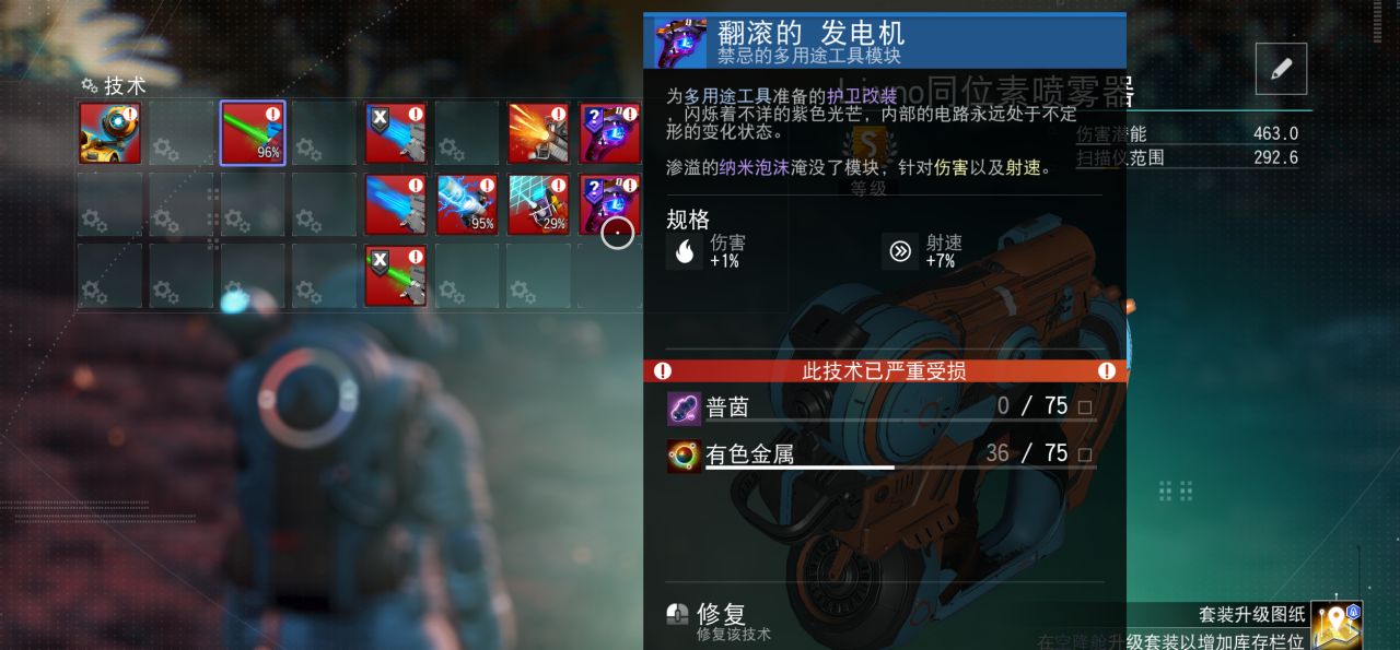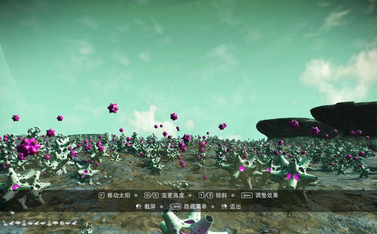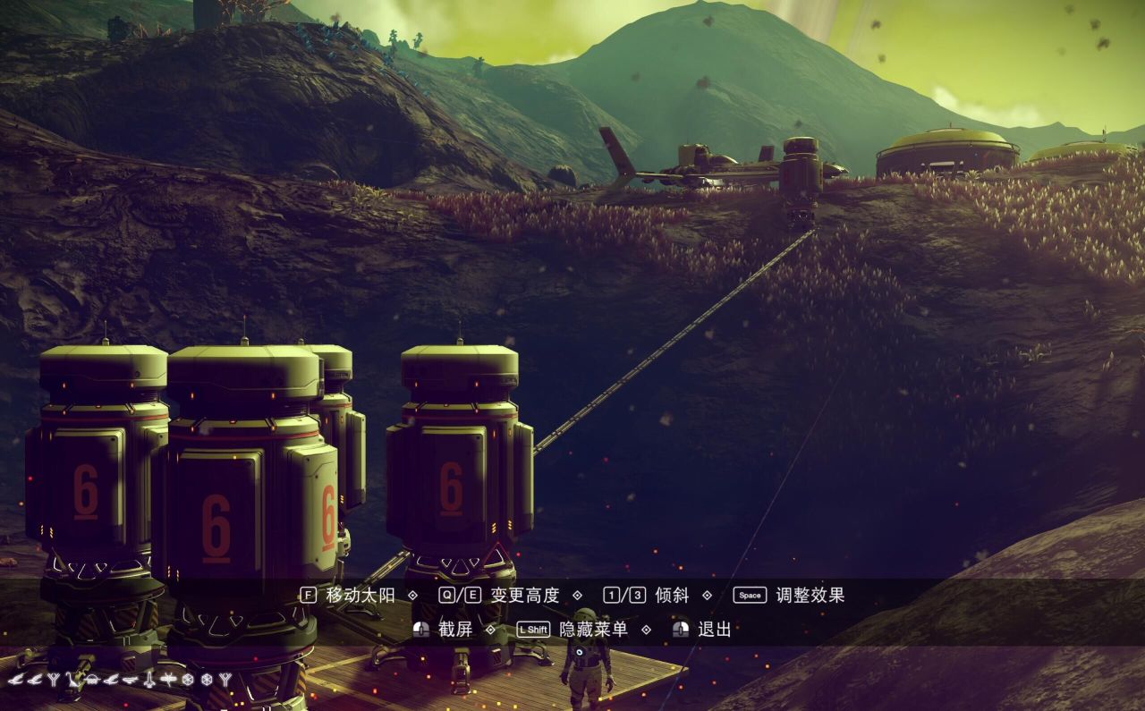 同樣在紅/綠/藍色星系,有極端氣候星球的概率更高。我們可以升級危險防護模塊在這些星球探索就行,比如在星系中心的一些星球上,有風暴,有空島,適合一邊建個基地一邊刷時長。
