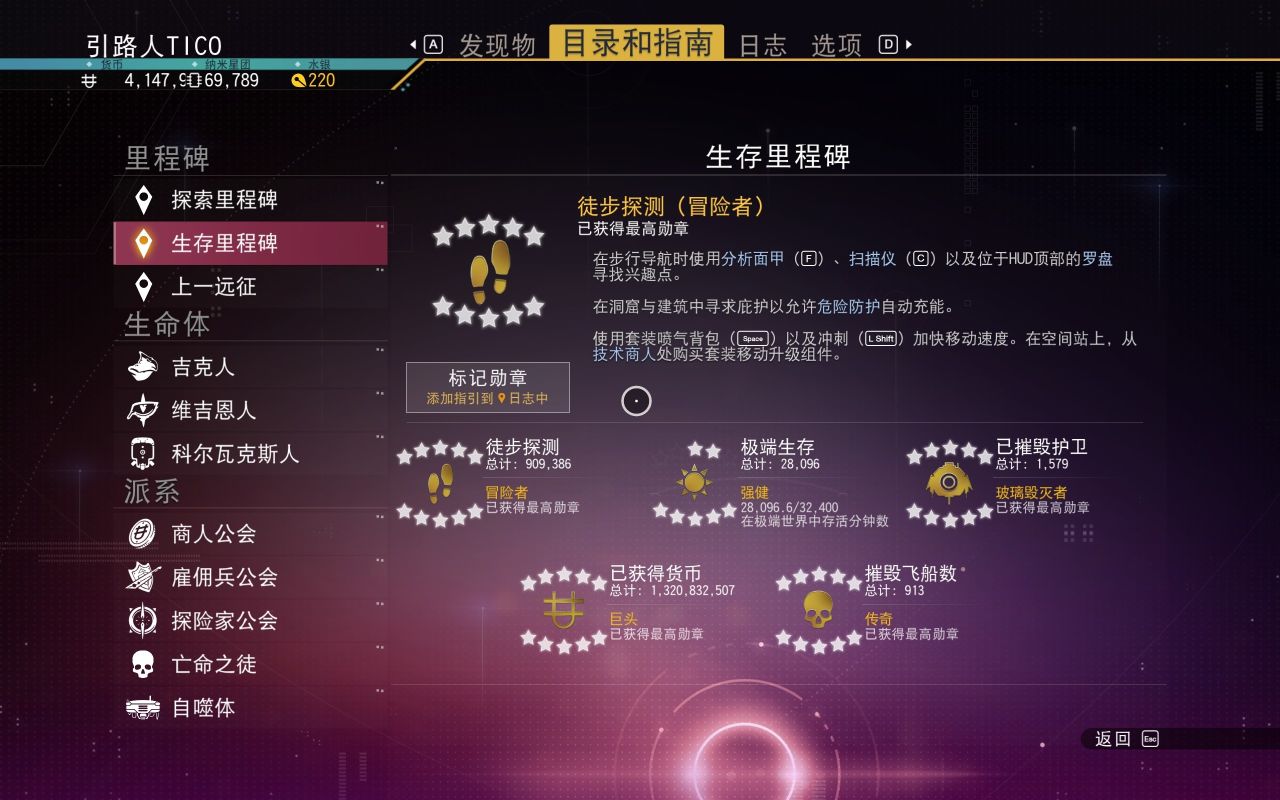 一般來說正常遊玩100小時通關普通檔後我們就完成了21個成就,在經過上文永死難度通關後,我們又完成了《無人深空》完成率最低的兩個成就。剩下的成就包括掃描行星動物和在極端環境下生存,我建議完成這幾個成就不必在永死檔下,倒不是更難,主要是普通檔已經有了些里程碑進度,接着進度完成節省時間。