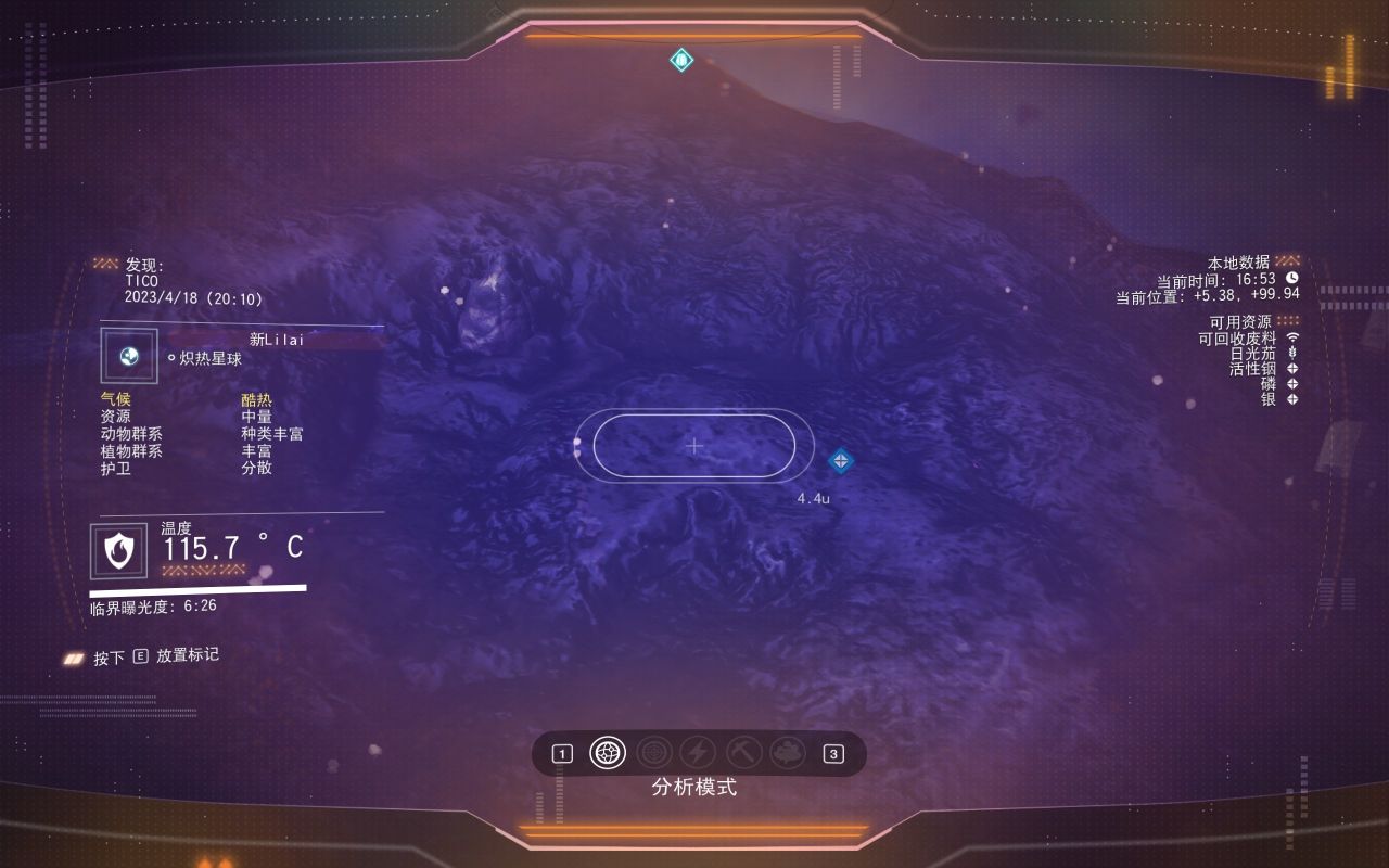 這裏推薦我自己發現的一顆星球,平常氣溫是一百多度,風暴期間三百多度,可以一直刷時長。在這裏我還建了個活性銦礦場 ,來了的都帶點土特產再走。