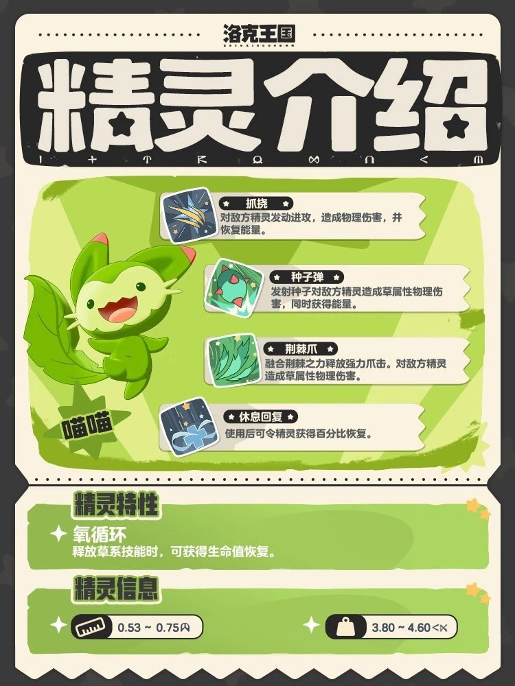 特點:草系寵物通常擁有較高的生命值和防禦力,能夠承受一定的傷害。它們對水系和岩石系敵人有優勢,並且一些草系寵物還具有恢復自身生命值的能力。