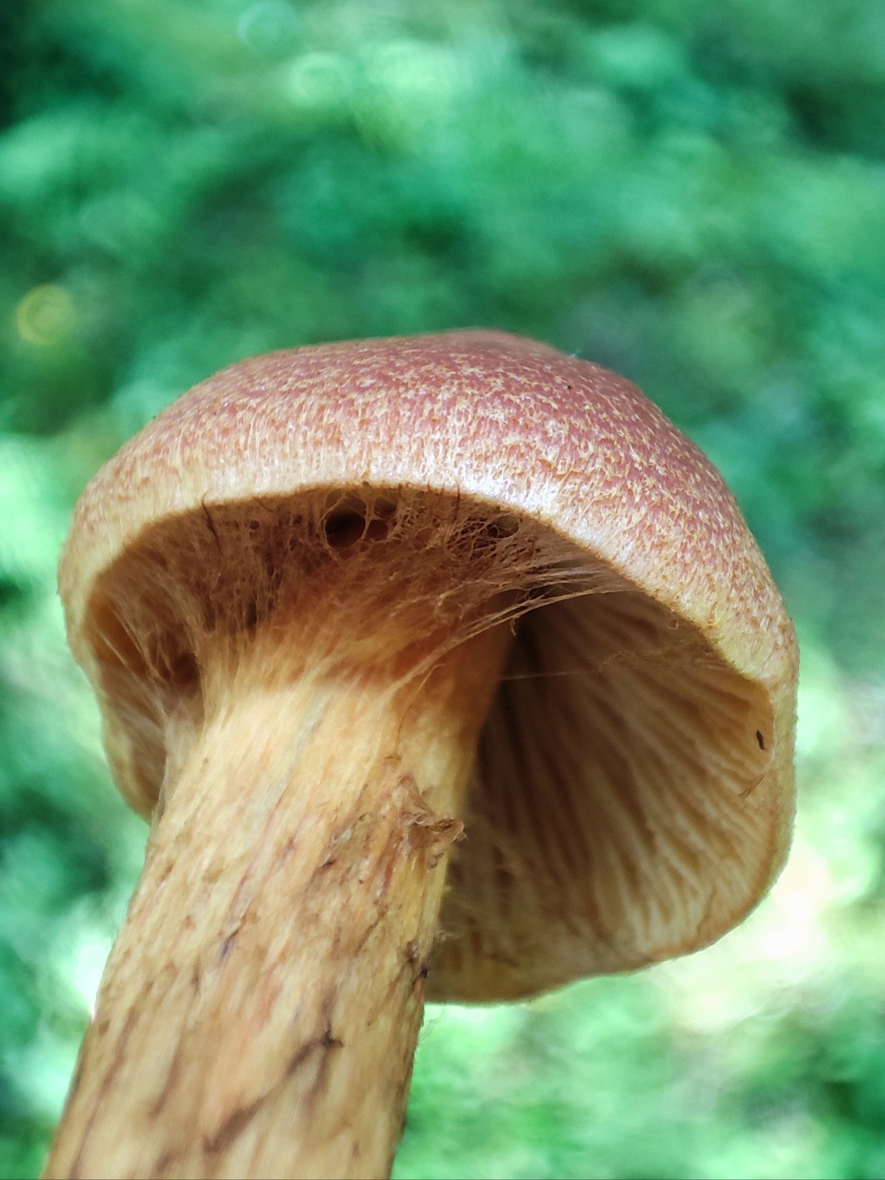 菌蓋和菌柄之間有很多絲,故得名絲膜菌