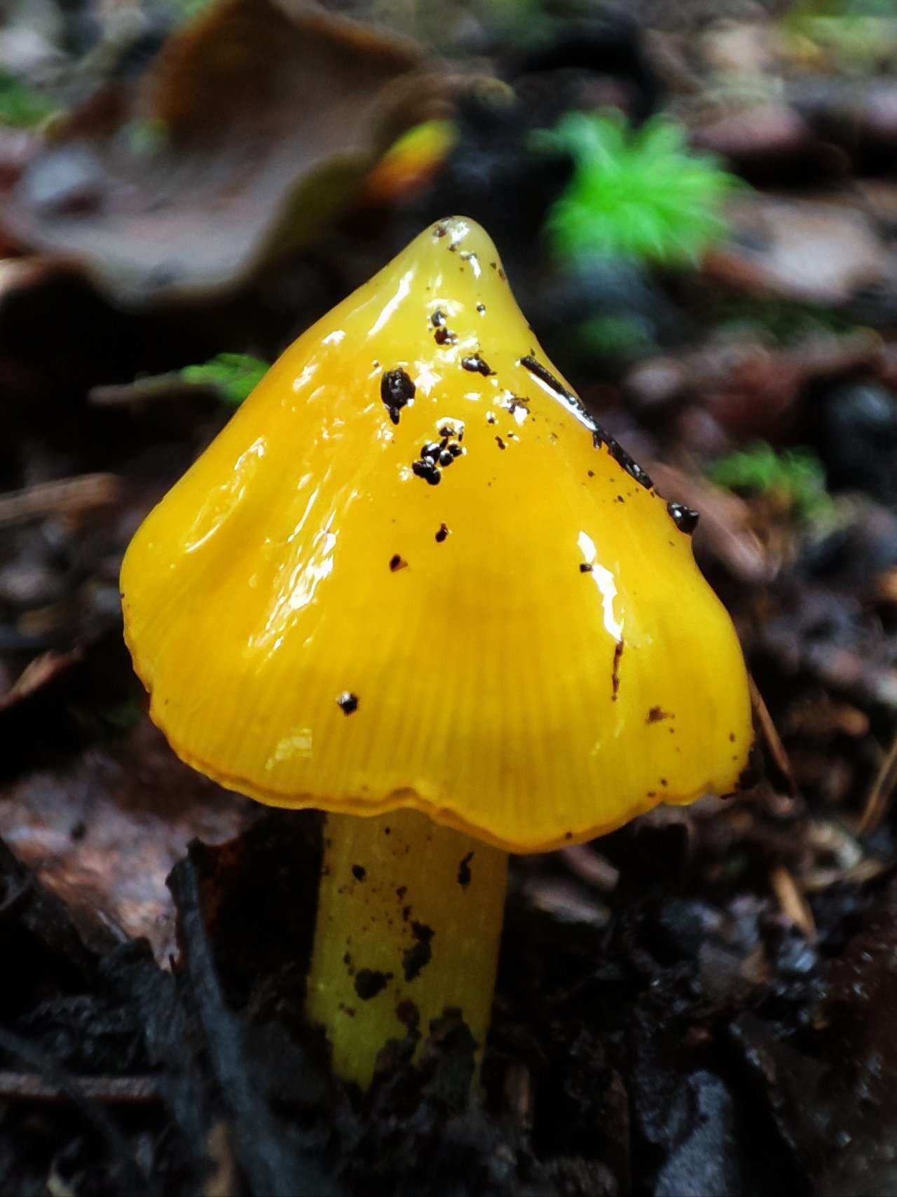很漂亮的小蘑菇,溼傘屬很多都是這種鮮豔的顏色
