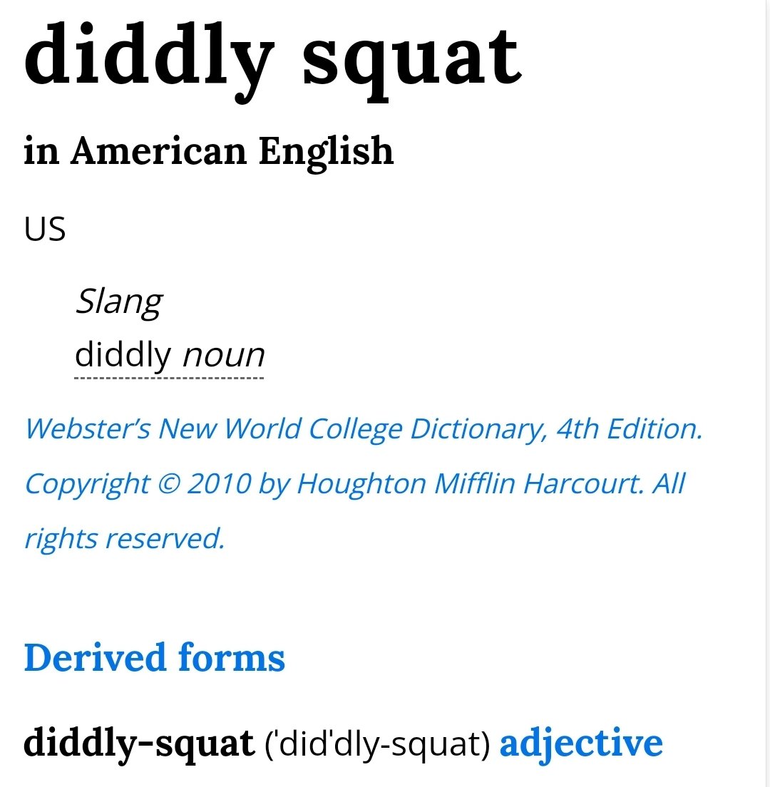 diddly-squat來自美加俚語,意爲’呆呆的蹲着’。