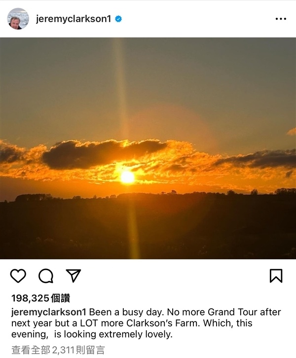 但克拉克森2023年在社交媒體上宣佈這部拍攝了5季度的節目將在2024年停播,同時也預告了<克拉克森的農場>系列全新登場。
