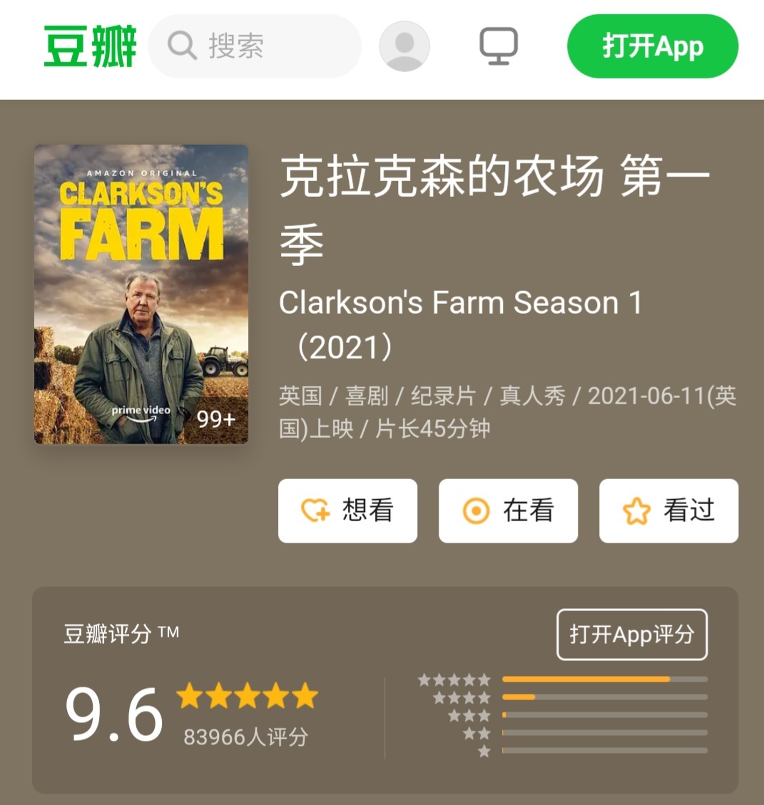 言歸正傳,<克拉克森的農場>123季在豆瓣評分高達9.6,沒看過的盒友可以趕快去看了,順便求一個沒有看過的腦子。