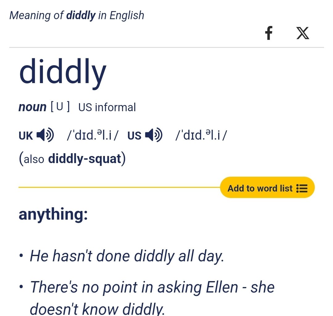 diddly單獨在牛津字典裏是‘任何事’的意思,英國不常使用。