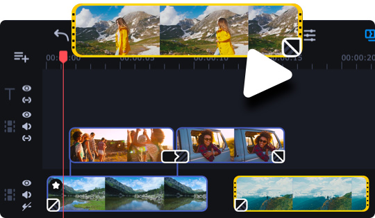 • 將淡入淡出和過渡效果應用到其他軌道,以使這些剪輯更平穩過渡。