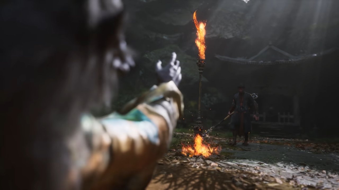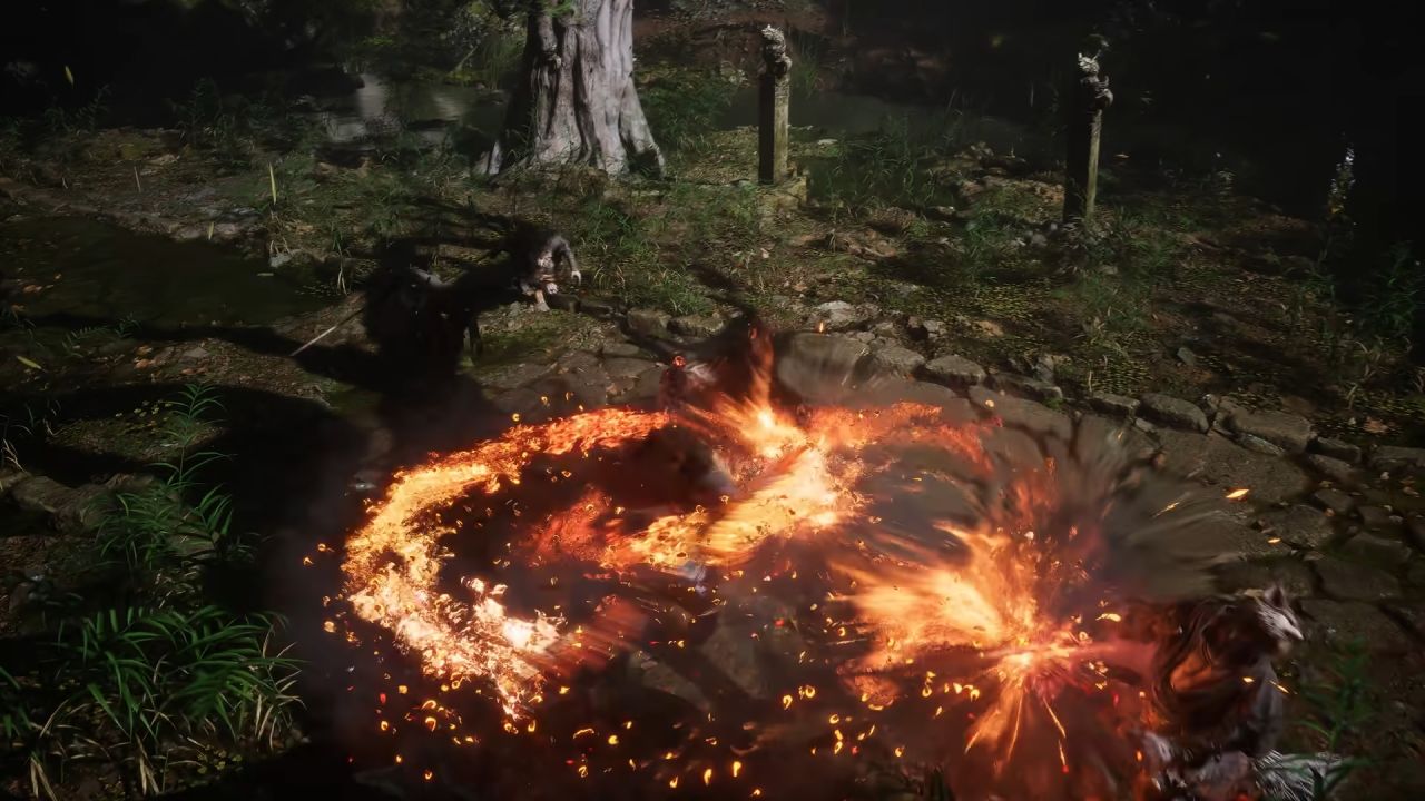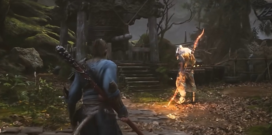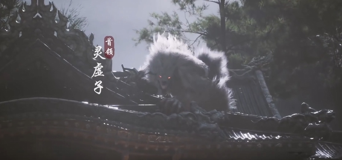 開頭悟空拿到的變身道具正是之前實機視頻中擊敗的“刀狼教頭”,變身後攻擊能附帶火焰🔥效果,並且自身避免火焰!“刀狼教頭”的原型應該也是“奎木狼”