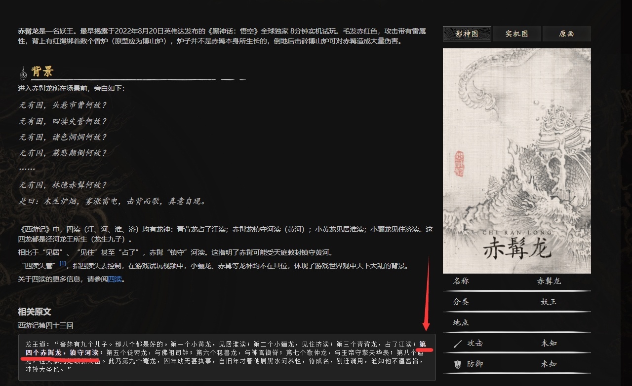 根據wiki數據,我們知道“赤髯”是涇河龍王四子之一,也包含了之前的“小驪龍”。