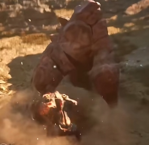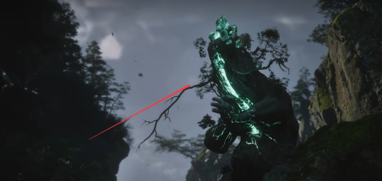 映入眼簾的是一個拍手的怪物,和去年發佈視頻中挾魂崖關卡的石母一模一樣!只是身上多了很多樹!可能是不同版本的小怪?