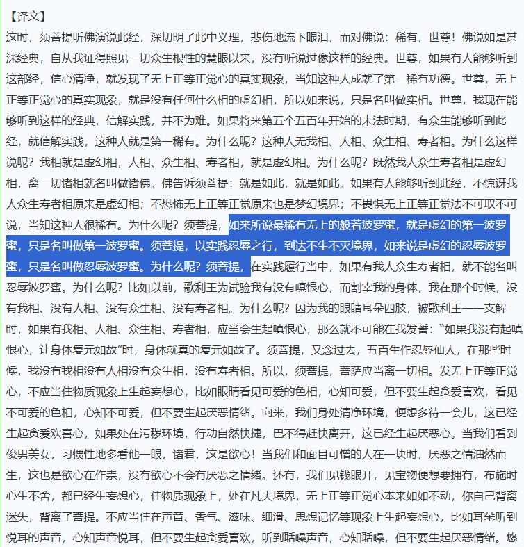 意思是:只是名字叫做“第一菠蘿蜜”和“忍辱菠蘿蜜”,但是是虛幻的,是假的。整體意思是:如來說不要只看表象,才能悟佛法!