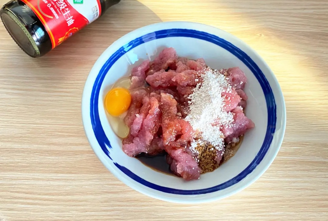 3.之後加入兩勺生抽、兩勺醋(米醋香醋都可以)、兩勺地瓜澱粉、半勺白糖、一個雞蛋