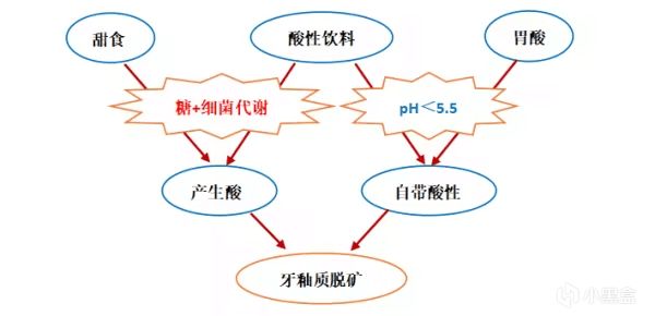 学过化学的朋友们都知道,钙磷无机物晶体质地坚硬,耐磨耐造,但它的天敌就是酸!酸可以轻松溶解这些羟基磷灰石晶体,造成牙釉质表面脱矿,孔隙变大,硬度降低,导致釉质本身变薄变少,还能开辟细菌侵入的通道,增加龋坏风险。