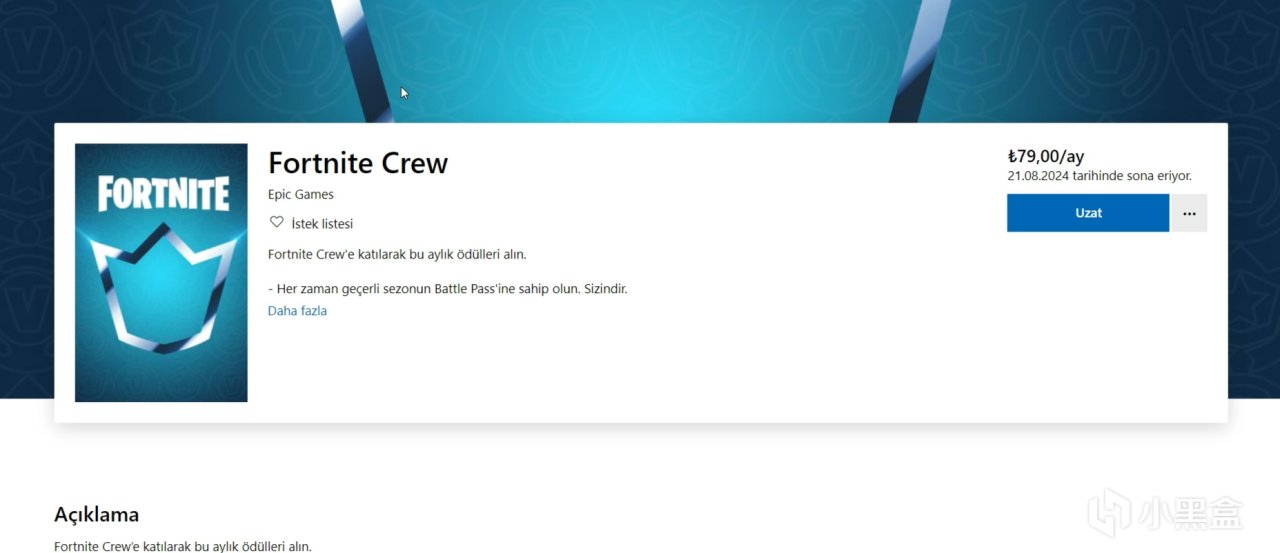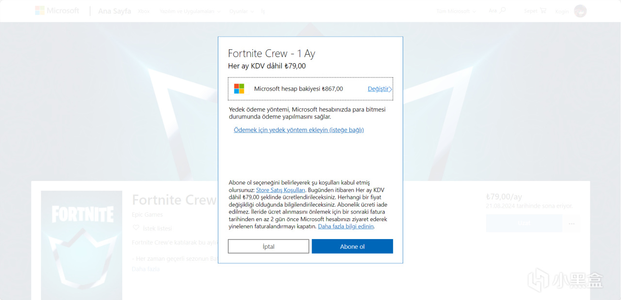 Xbox土耳其商店月卡訂閱鏈接:Fortnite Crew Satın Al - Microsoft Store tr-TR