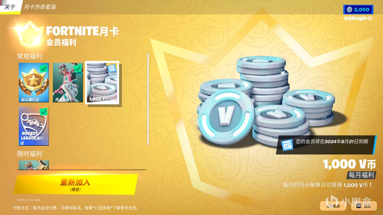 堡壘之夜月卡也叫會員(Crew),與戰鬥通行證(英雄季卡)不同,是一種訂閱制的內容,訂閱週期按月來計算(具體時間根據提示的到期時間爲準),但是目前國區暫時沒有月卡的直接訂閱選項。