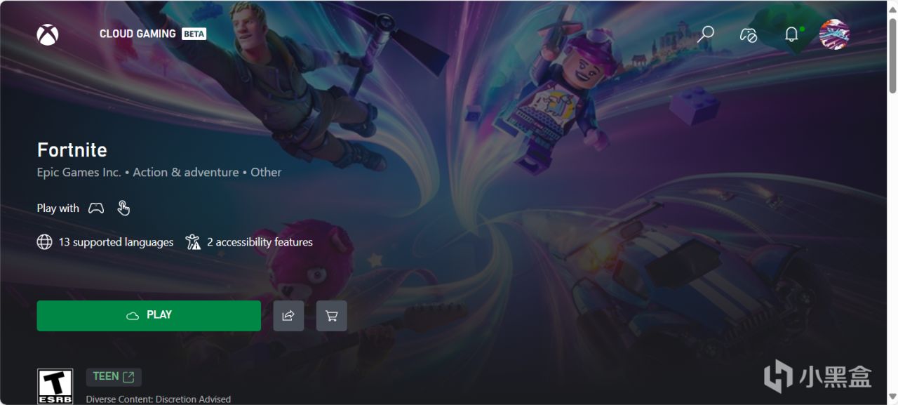 然後進入堡壘之夜Xbox雲的網站(PC需要連接手柄,如果沒有手柄最好手機操作):https://www.xbox.com/en-US/play/games/fortnite/