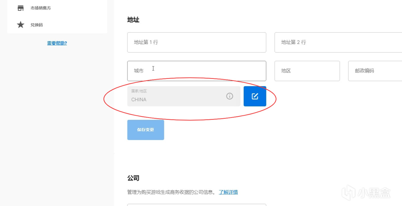 Epic賬戶設置裏的國家/地區選項