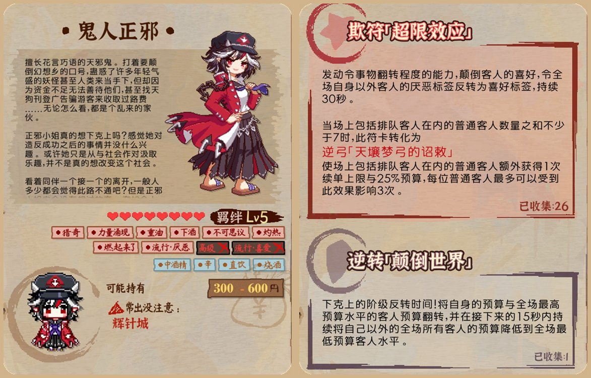 ▍DLC4擴展包新增6位可到店的特殊客人,喜好、符卡及羈絆任務如下: