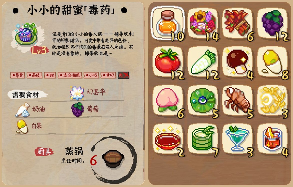 新增食材:奶油、鮮花、香椿、黃瓜、西紅柿、螃蟹、海膽、章魚、紅豆、梅子