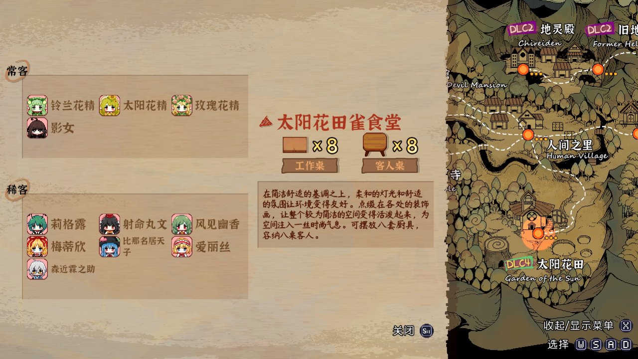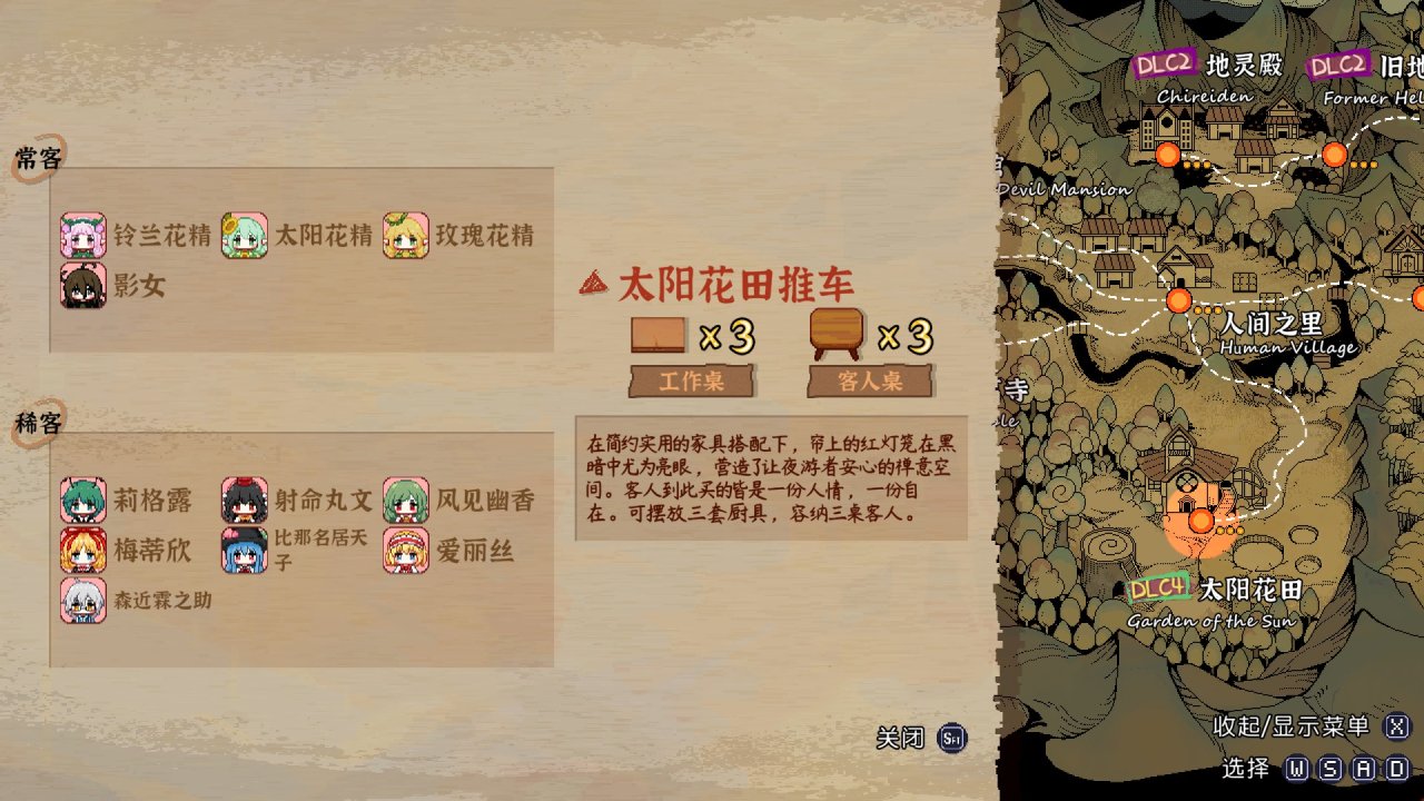 ▍DLC4擴展包在太陽花田和輝針城各增加一位地圖商人,新增的食材和酒水可以在商店裏購買,也可以通過地圖採集獲得。
