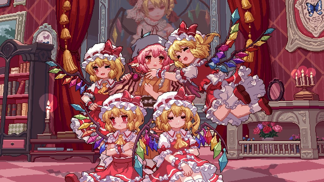 芙蘭四個形態:遠程攻擊、護盾、跑得快,近戰秒殺;紅眼芙蘭特爾(每隔一段時間釋放流星雨(全場隨機選擇),死亡後在每一行生成一個小芙蘭(正好四個形態)。