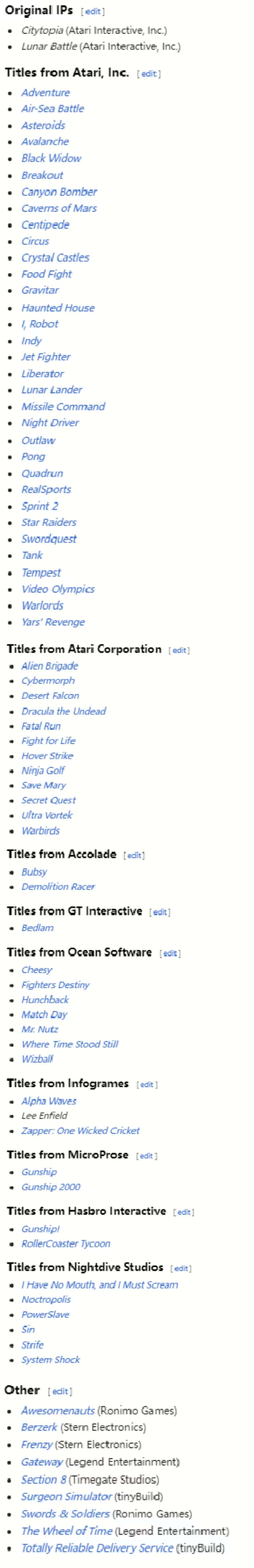 曾经的Infogrames Entertainment S.A.更名为雅达利SA,也就是说我们所熟悉的雅达利只是雅达利SA麾下的一个工作室