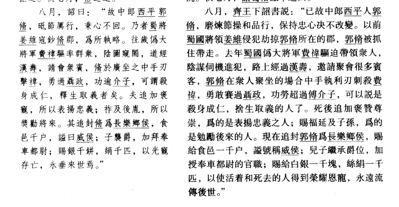 郭修被俘虏之后在蜀国被授予左将军的官阶,在宴会上临时起意决定刺杀刘禅,但因为无法靠近刘禅只能退而求其次杀费祎了。对此曹芳的评价是:“勇过聂政,功逾介子,可谓杀身成仁,释生取义”虽然说这事确实很离谱,这次的刺杀还是和曹芳举出的例子还是有很大差别的,聂政和介子都是收委托之后才进行的刺杀活动,而郭修并没有这样的原因,至于郭修是心系魏国那也是不太可能的,他在魏国并无一官半职,当年被俘虏时也不反抗,他都当上左将军了突然就觉醒了对魏国的爱国之心也不太可能。按陈寿对说法就是“义无所加,功无所立,可谓折柳樊圃,其狂野且”。说完了蜀国的变故,下面就是魏国的变故了。