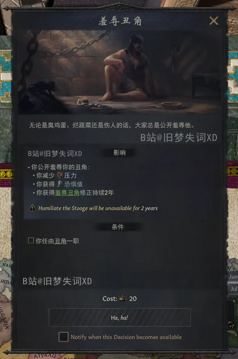 丑角一职是你营地内最厌恶的角色,你可以通过羞辱他们来减少压力和获得恐惧值。并且能减少比营地狂欢多得多的压力。
